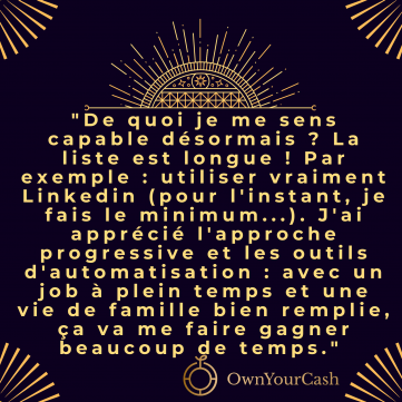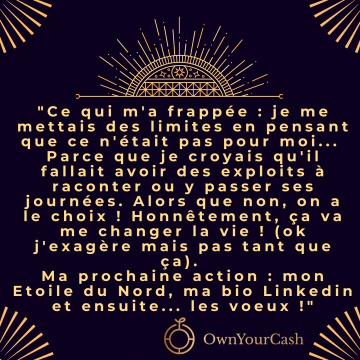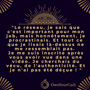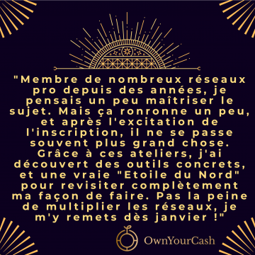 OwnYourCash ouvre ainsi une conversation différente autour de l’argent, et forme le regard d’une nouvelle génération de Business Angels (des femmes massivement et les hommes qui le souhaitent).